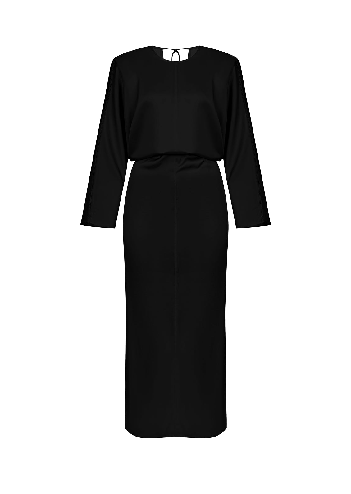 Сукня у стилі 80-х з характерним акцентом на плечах. Виготовлена з тканини із шовковистою текстурою, що м’яко драпірується та формує плавний силует. Резинка по спинці забезпечує комфортну фіксацію та дозволяє створювати легкий напуск верху. Знімні плечики дають можливість адаптувати сукню під настрій — від більш структурованого, виразного силуету до м’якішої, невимушеної форми.