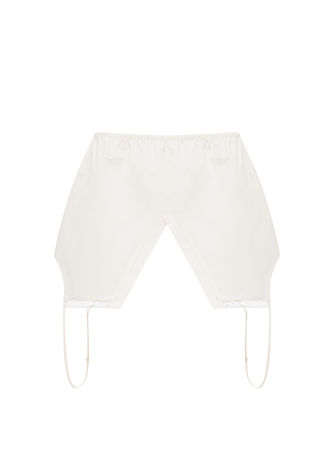 Lingerie-inspired basque crafted from soft cotton fabric. The elastic waistband provides a comfortable, effortless fit. With its minimal shape and delicate ribbon detailing, the piece adds a refined layered touch to any look. Perfect for pairing with trousers or skirts to complete a modern, sophisticated silhouette.