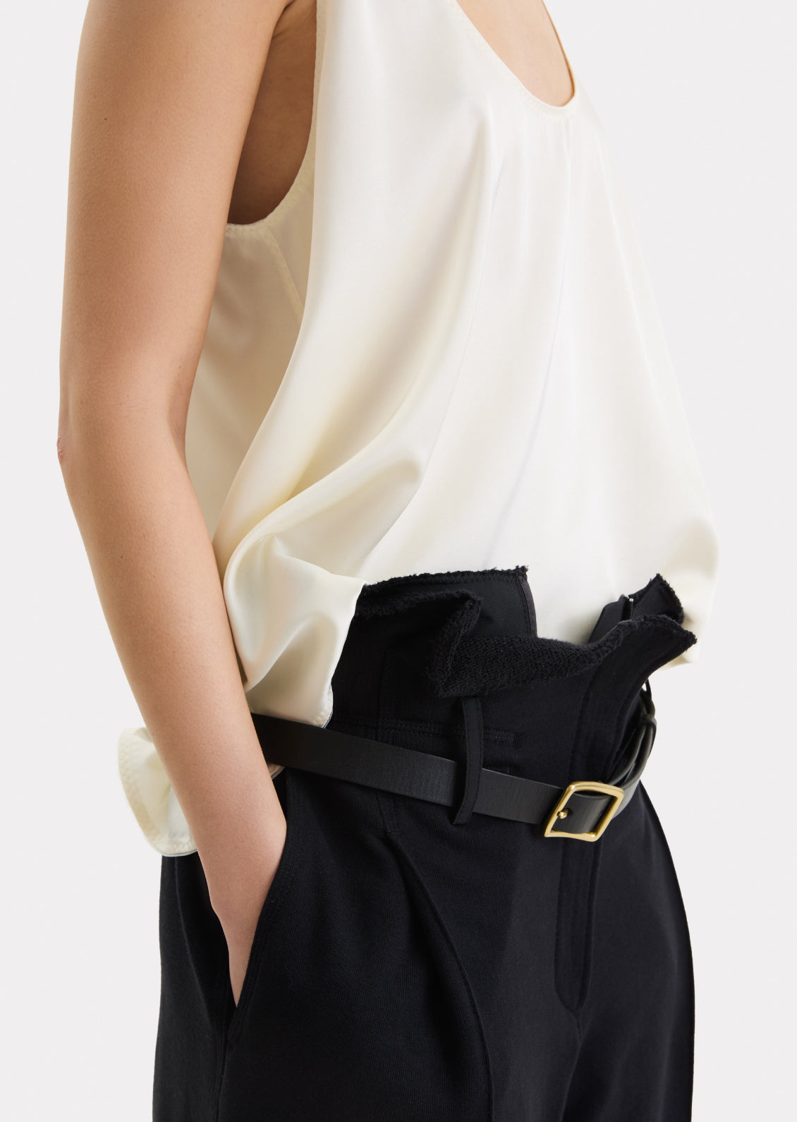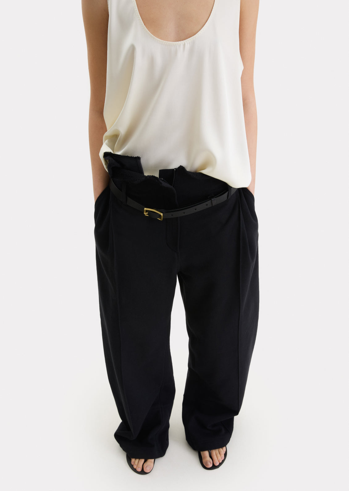 Щільний heavy cotton, що тримає форму та комфортний у носінні. Застібка та гумка на талії забезпечують гнучку посадку. Заокруглений крій формує характерний силует. Низька посадка. Пояс можна вивертати для більш розслабленого вигляду. Обирайте свій звичний розмір.